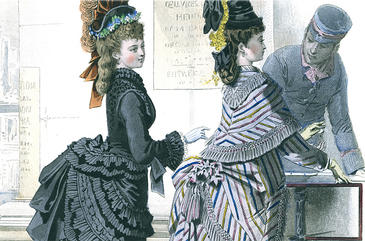 Have you heard about the woman who, in 1886, was caught attempting to smuggle Cuban rum through U.S. Customs in a hollow tin bustle? The bustle-shaped contraption was worn under her clothes, and after filling it with the demon rum, she was able to illegally transport a gallon of bootleg liquor, no doubt sloshing gently as she moved through the port of Tampa. Officials began to wonder why she was making so many trips to Cuba, and after one trip too many, women officers were called over to “inspect” the detained traveler, and the booze-bustle was discovered. I’m sure every single person involved in this caper talked about it for the rest of their lives. Too bad about the bootlegging charges, but thumbs up, lady, on the creativity. Utilitarian fashion! That might have been the only time a bustle was actually useful.