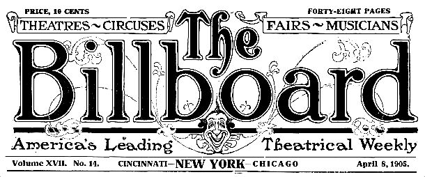The entertainment magazine we know now as Billboard began life in 1894 as an advertising trade publication focusing on outdoor billboards and posters. By the turn of the century it had broadened its scope to the entertainment industry, including vaudeville, circuses, carnivals, and outdoor fairs. The ads from this period of “The Billboard,” as it was called then, are great. Here are a few of my favorites, found browsing the pages of editions from 1904 and 1905. (Some images are larger when clicked.)