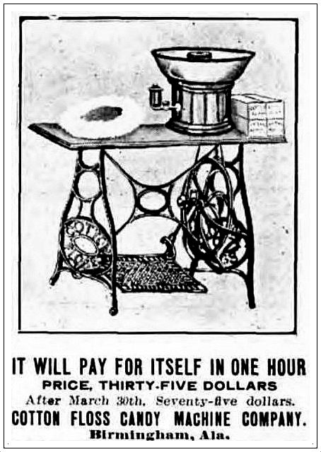 A possible infringer might have been the Cotton Floss Candy Machine Co. of Birmingham, Alabama. “It will pay for itself in one hour.”