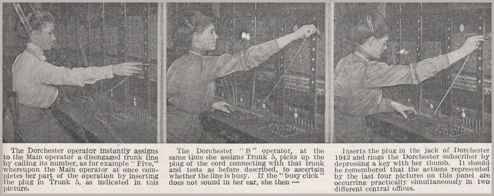 THE PANELS BELOW ILLUSTRATE “THE MAKING OF A TRUNKED CALL; THAT IS, ONE THAT ORIGINATES IN ONE EXCHANGE AND TERMINATES IN ANOTHER”