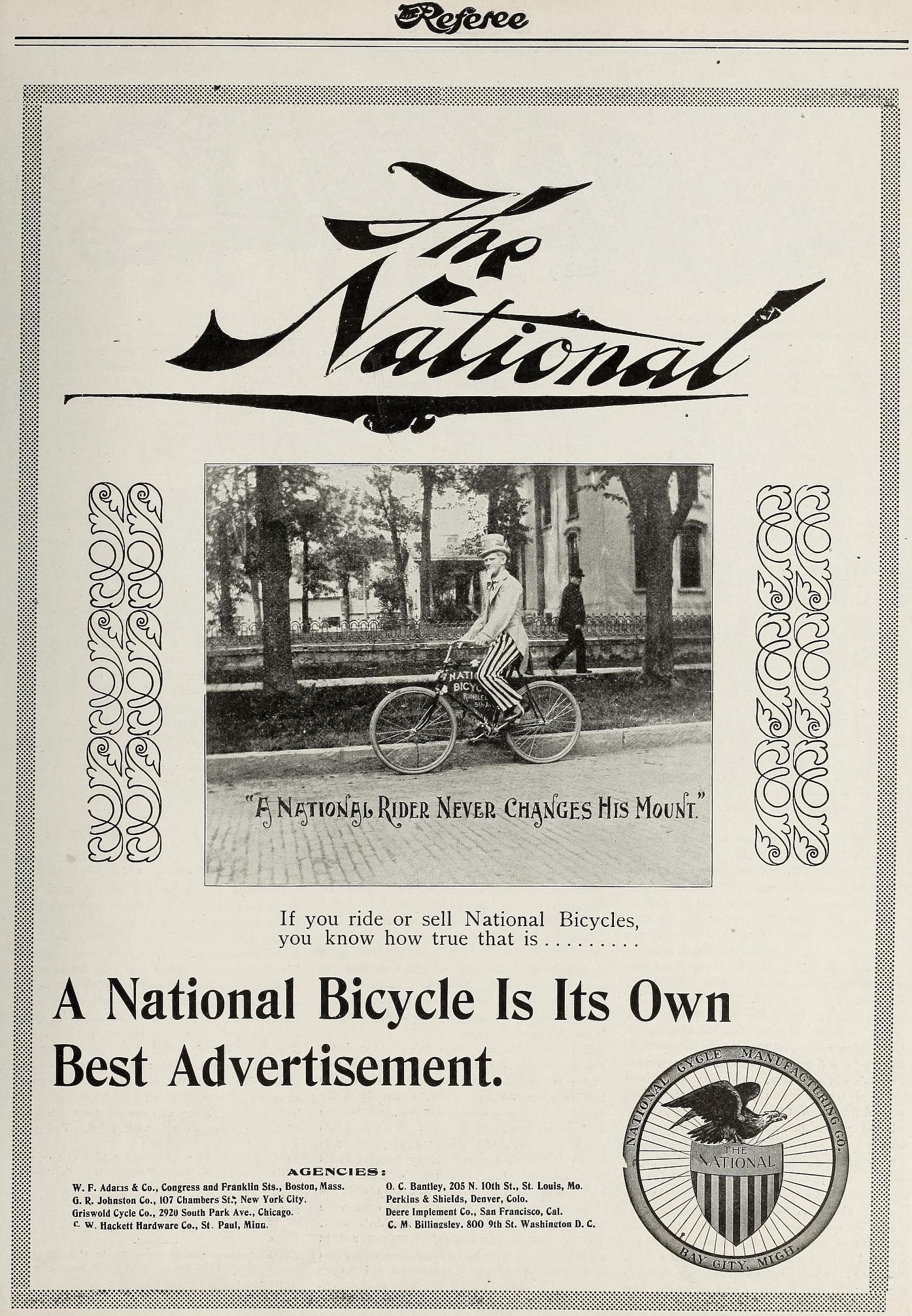 National Bicycle ad is from The Referee and Cycle Trade Journal (1896-97).