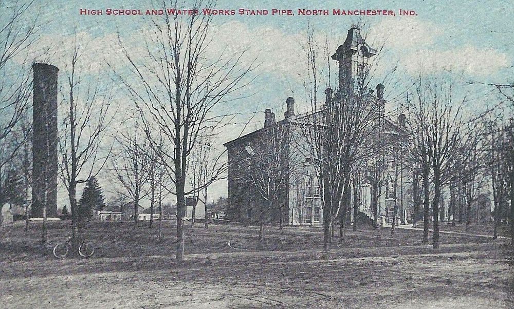 North Manchester, Indiana — High School and Waterworks Stand Pipe.