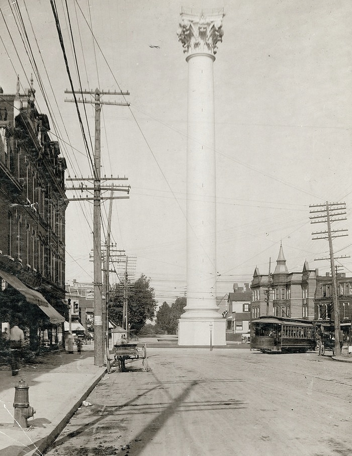And the same tower a few years later, in 1915. Bit of a traffic hazard? (Via the Missouri Historical Society.)