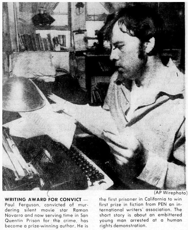 Whether or not Paul Ferguson co-wrote an episode of”The Wild, Wild West” and had a sitcom (!) under option in Hollywood, he did receive praise as a writer. He even won a P.EN. Award for fiction while still in San Quentin.